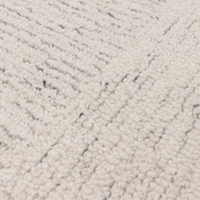 Looped pile, Theo features a distinctive combination of loops and tonal woollen yarns, expertly hand tufted in chevron and cross hatch patterns.