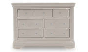 The Sable range boasts a painted matte finish in Taupe or Bone for a sleek appearance. The polished silver handles add sophistication, while classic decorative moulding enhances its charm. With elegant curves throughout, it complements any bedroom decor with grace and style.