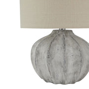 The Darcy Antique White Flute Lamp embodies rustic refinement with its distinctive pumpkin-shaped base that showcases deliberate imperfections, ensuring each piece boasts unique character. This individually handcrafted lamp features a weathered grey concrete construction with pronounced ribbing that creates fascinating textural depth, while the neutral beige fabric shade softens the illumination for a warm, inviting atmosphere. The lamp's subdued palette allows it to harmonise with various interior styles from country cottage to modern minimalist, making it an attractive proposition for diverse customer demographics. The Darcy range offers retailers substantial cross-selling opportunities, particularly with the complementary Darcy Antique White Vase which shares the same artisanal quality and aesthetic sensibility. For customers seeking to create cohesive decorative schemes, suggest pairing with the Siena Brown Jug and Column Candle Holders, whose earthy tones and organic forms create a balanced vignette when grouped together. Alternatively, the Athena Stone Hurricane Lanterns provide a perfect counterpoint, their rustic stone finish echoing the lamp's weathered concrete while offering varied lighting options for layered illumination schemes. The lamp's modest footprint of 31 x 31 cm with a height of 34 cm makes it suitable for display on side tables, bedside units or office desks without overwhelming the space. The intentional highlighting of material variations celebrates authentic craftsmanship, appealing to consumers who value individuality over mass-produced uniformity. Each lamp tells its own story through subtle variations in colour, texture and patination - a compelling selling point for retailers catering to discerning clientele. The growing consumer preference for items with character and provenance makes this lamp particularly marketable in today's interiors landscape, where personalised spaces take precedence over clinical perfection.