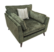 A classic design with a contemporary twist which would live happily in a traditional or modern living space. An extremely comfortable sit with high back cushions and arm bolster wraps you in luxurious support, the striking accent cushion offers both style and flare. A choice of wood colour just adds that finishing touch to any interior theme.