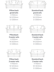 Scatter Cushions:2 x large scatter cushions, 2 x small scatter cushions (piped edges) & 1 x lumbar cushion