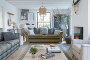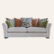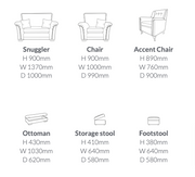 Hampton has the best of both worlds – casual with beautiful pillow back fabrics, a great sofa to curl up on in front of the tv or choose the classic back cushions for more formal elegance when entertaining. The design is subtle, understated, with a perfectly proportioned sabre arm, hand pleated soft styling, finished off with a line of antique studs, each individually hand tacked in place. Of course, the studs are optional, sofas can also be supplied without if preferred. Crafted with meticulous attention to detail, sofas are fitted with solid ash feet, hand finished in Warm Grey or Antique colours to match perfectly with any interior. There’s a choice of beautiful fabrics ranging from vintage floral designs to plaids and stripes with warm earthy shades to create a country inspired aesthetic. The overall look embodies rustic and nostalgic charm, drawing inspiration from the elements of farmhouse or paired back, cottage style interiors with some looks featuring bolder statement colours to contrast against neutral interior schemes. A country inspired collection would not be complete without a wing back chair. The Accent Chair has been designed to complement Hampton, a classic piece with a modern twist.